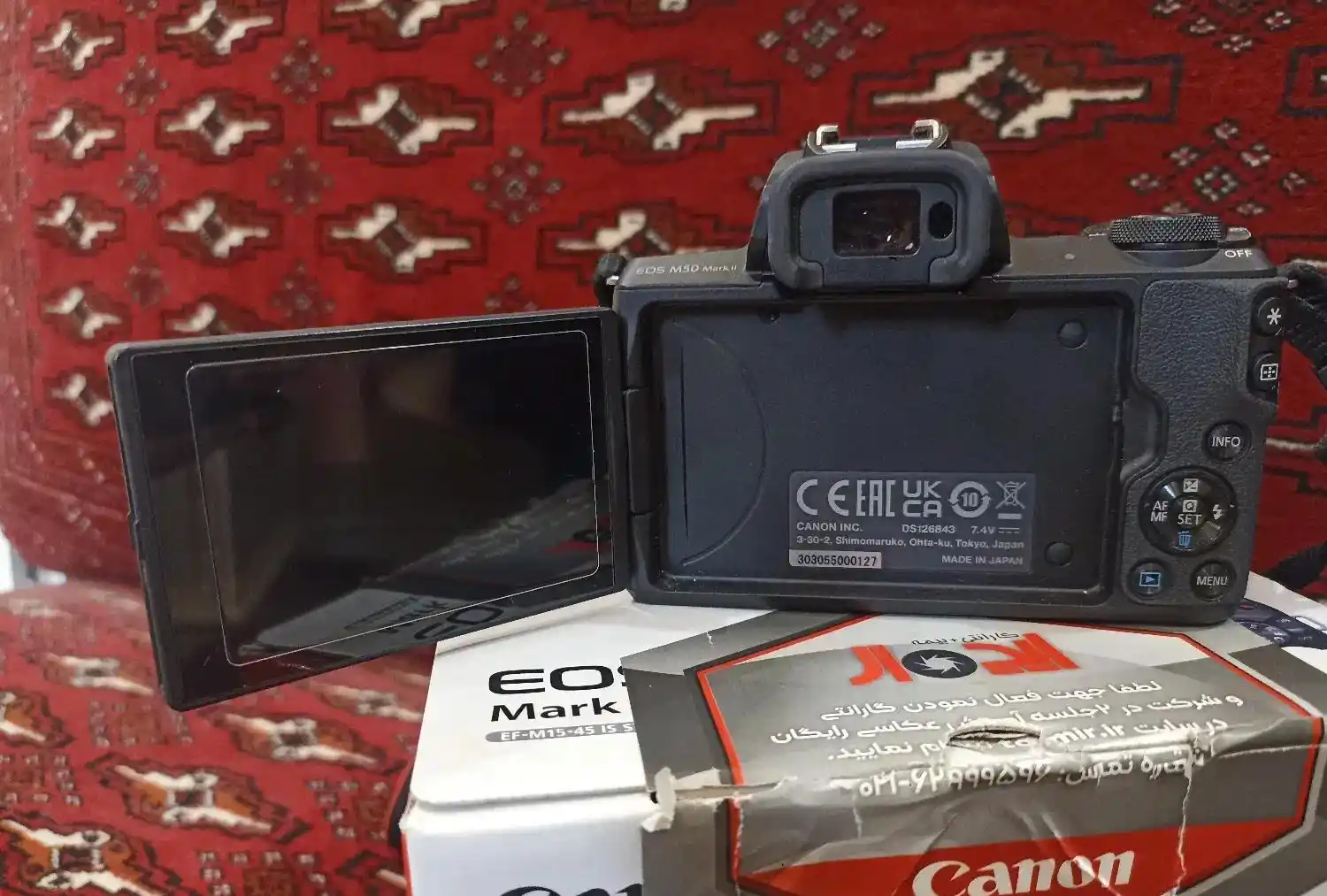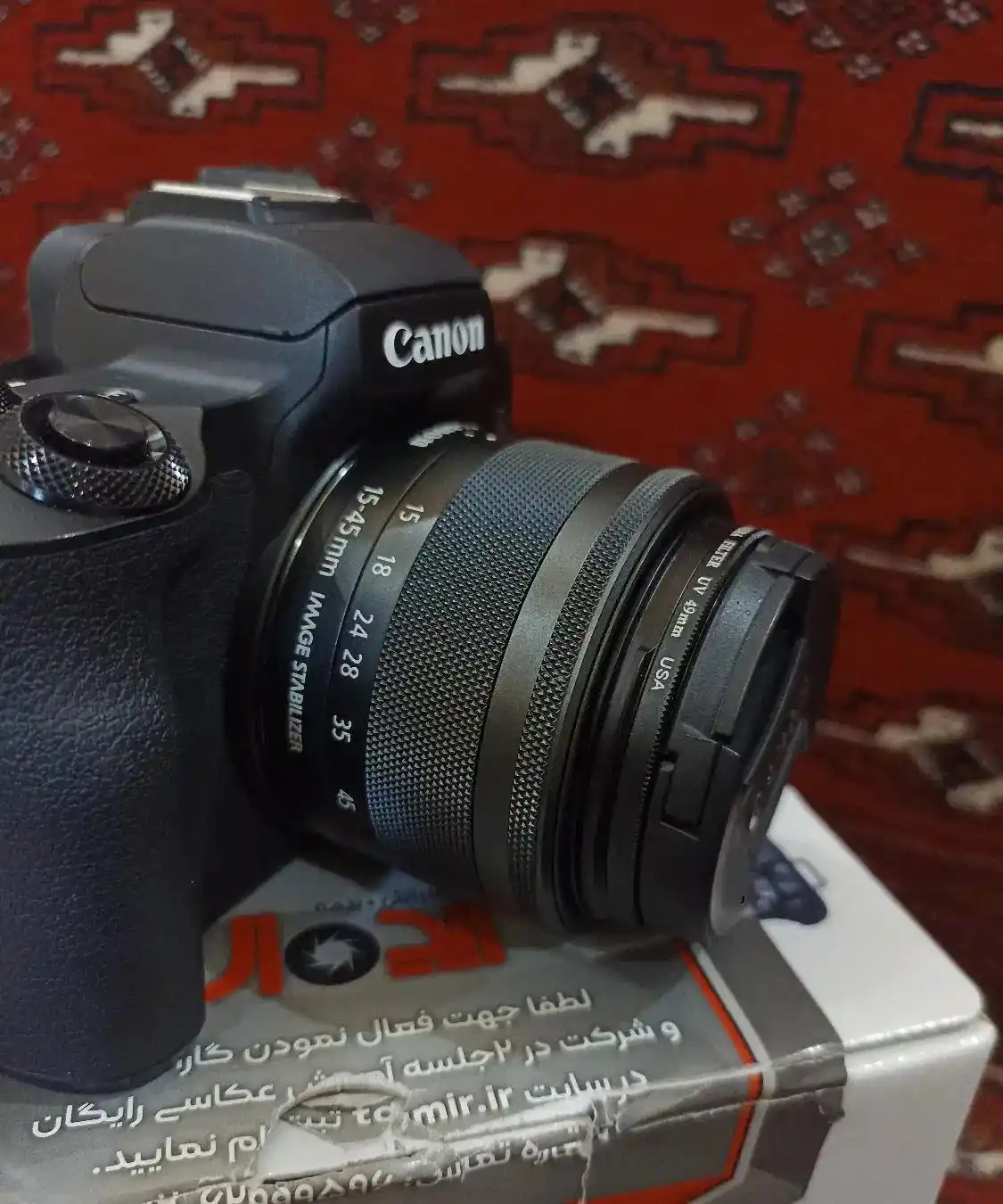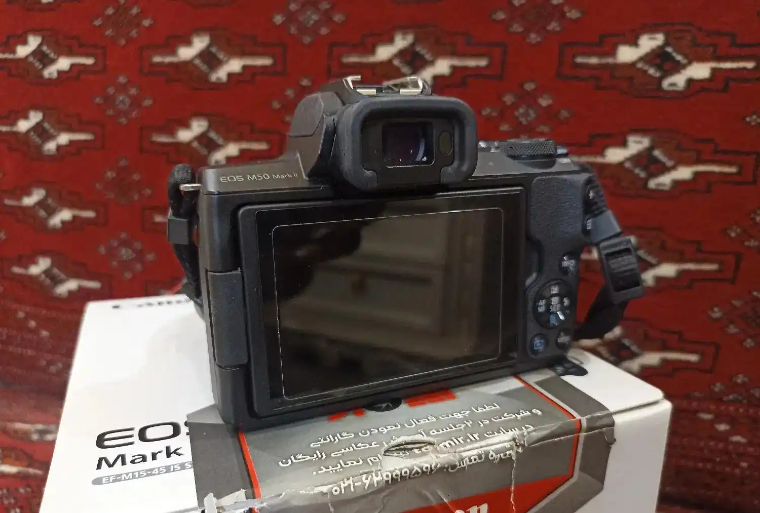 کنون m50 مارک ۲ با لنز ۱۸-۵۵ بی نهایت تمیز و کم کار بدنه و لنز کاملا سالم صفحه نمایش دارای گلس کیف و شارژ اصلی باتری کاملا سالم با خریدار واقعی سر معامله راه هم میایم