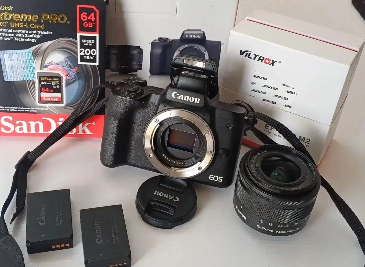 دوربین Canon m50 + ( Auto Focus Mount Adapter )