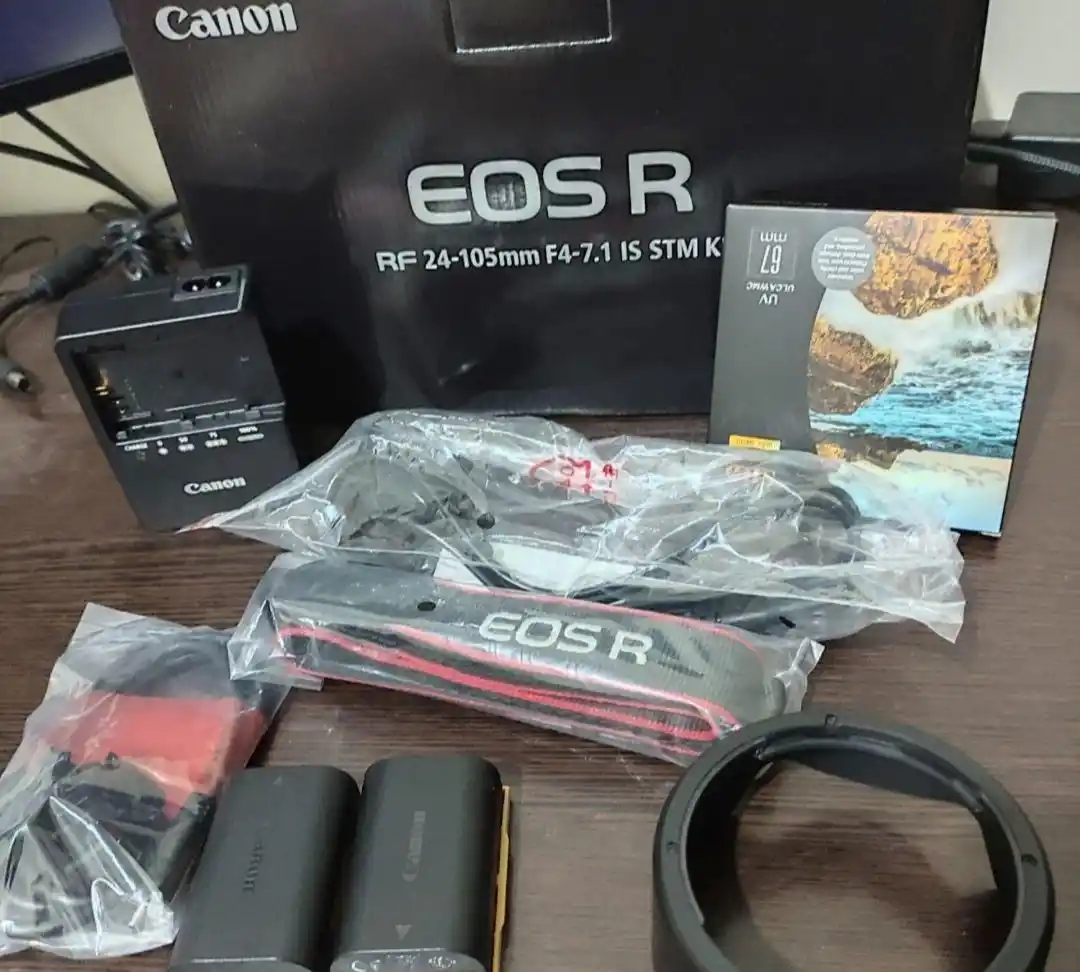 کیت دوربین کانن R بدون آینه بهمراه لنز ۱۰۵-۲۴ در حد نو و کم کارکرد حدود ۵۰۰۰ شات