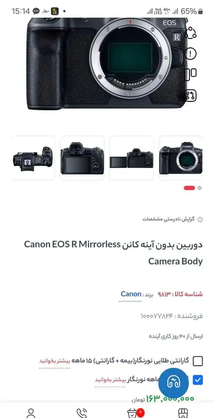 مطابق عکس آخر، فقط بدنه دوربین در سایت فروشنده، 163 میلیون هست پس لطفا تقاضای تخفیف یا پرداخت چکی نفرمایید