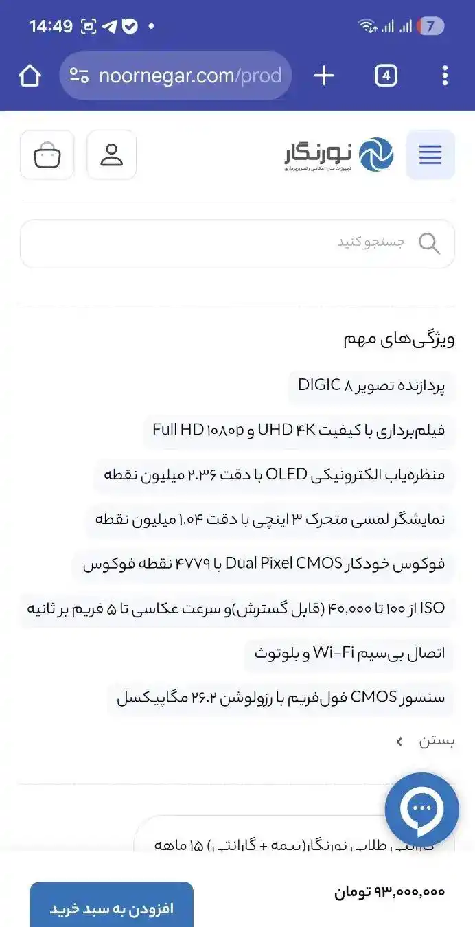 لیست قیمت دوربین