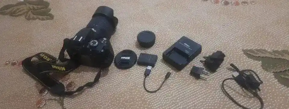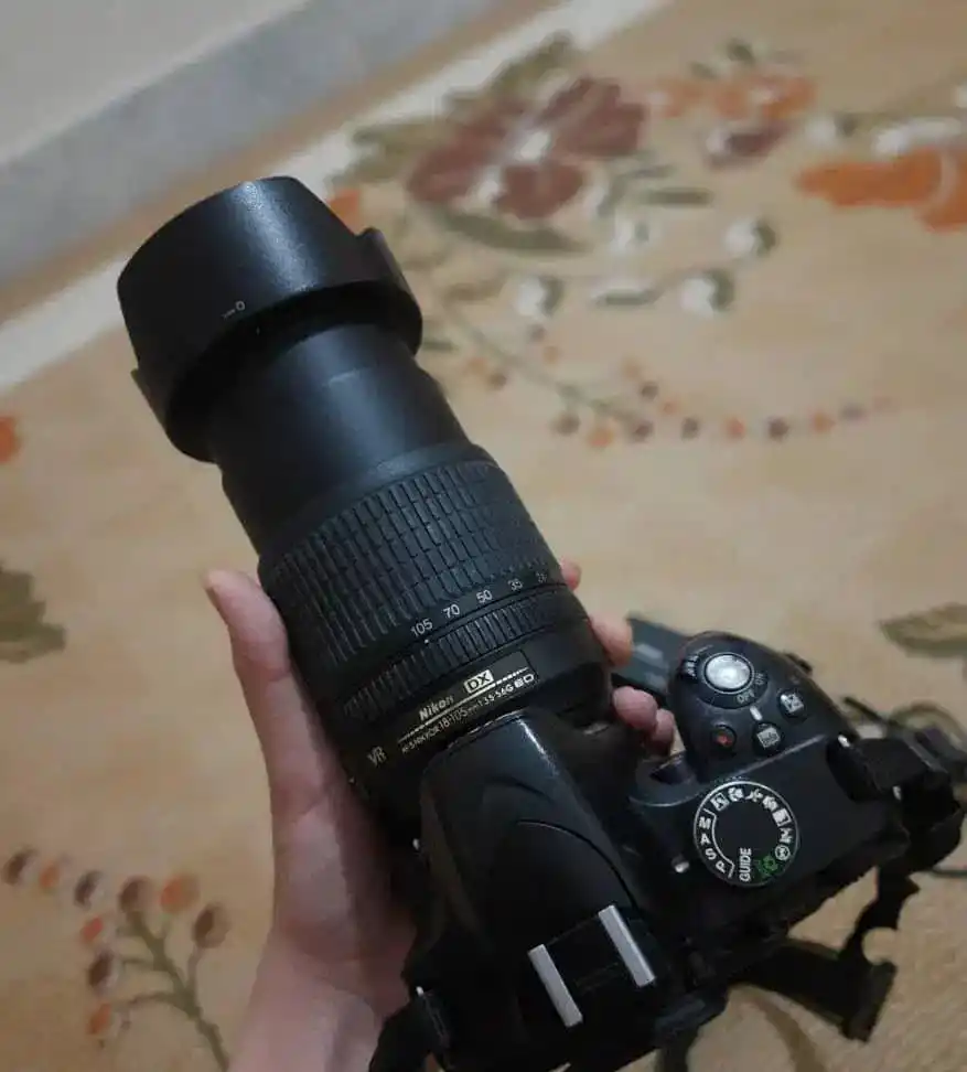 دوربین نیکون 3200D لنز 18_105mm محافظ لنز uv هم روش داره کیفیت عکسش 24 پیکسله کیف و کابل و ... هم روش داره