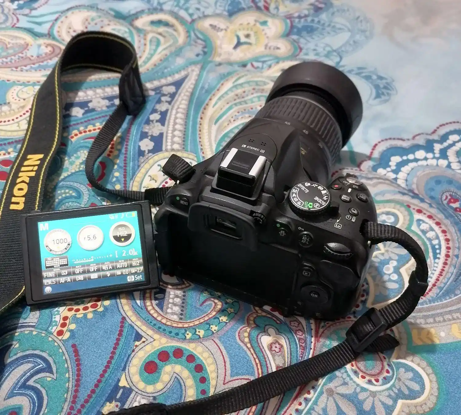 نیکون d5200 تمیز و سالم کم کارکرد (16000 شات) 24 مگاپیکسل فیلمبرداری 1080 60p با میکروفون استریو داخلی لنز دارای محافظ uv صفحه نمایش دارای ضد خش به همراه جعبه + کیف + کتاب راهنما به زبان فارسی + کارت sd 32GB + کارت خوان