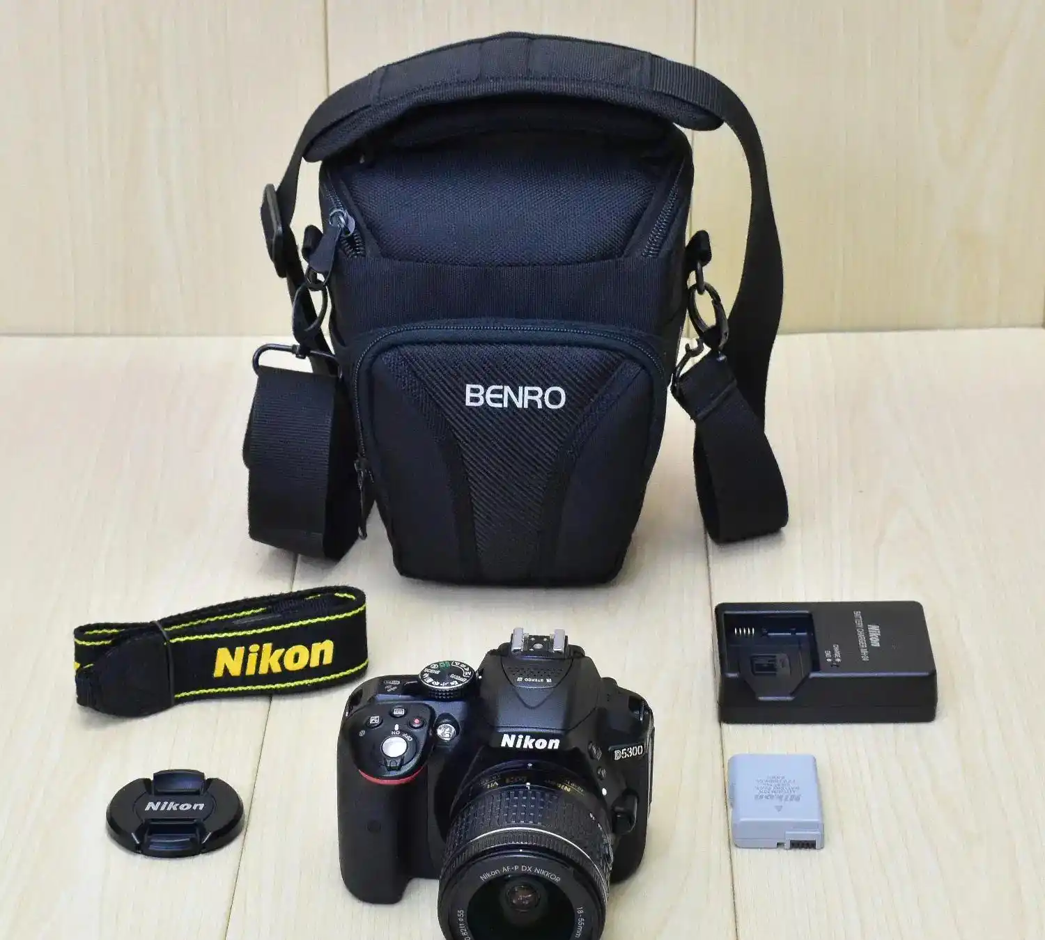 بادی دوربین - لنز 55-18لرزشگیردار - شارژر - باتری - کیف باکیفیت BENRO -بند گردنی - درپوش لنز
