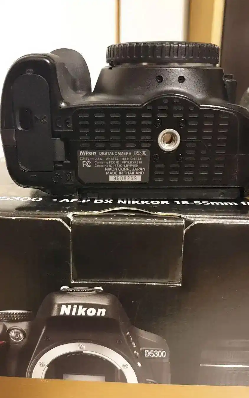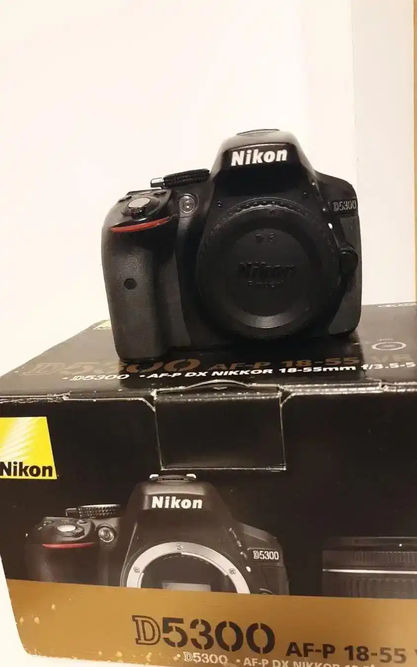 دوربین نیکون d 5300 بسیارتمیز ودرحدنو ۲۴مگاپیکسل همراه با لنزکیت ۱۸-۵۵ ،جعبه ویووی وباطری وشارژر وبنداصلی شات زده زیر۱۵k