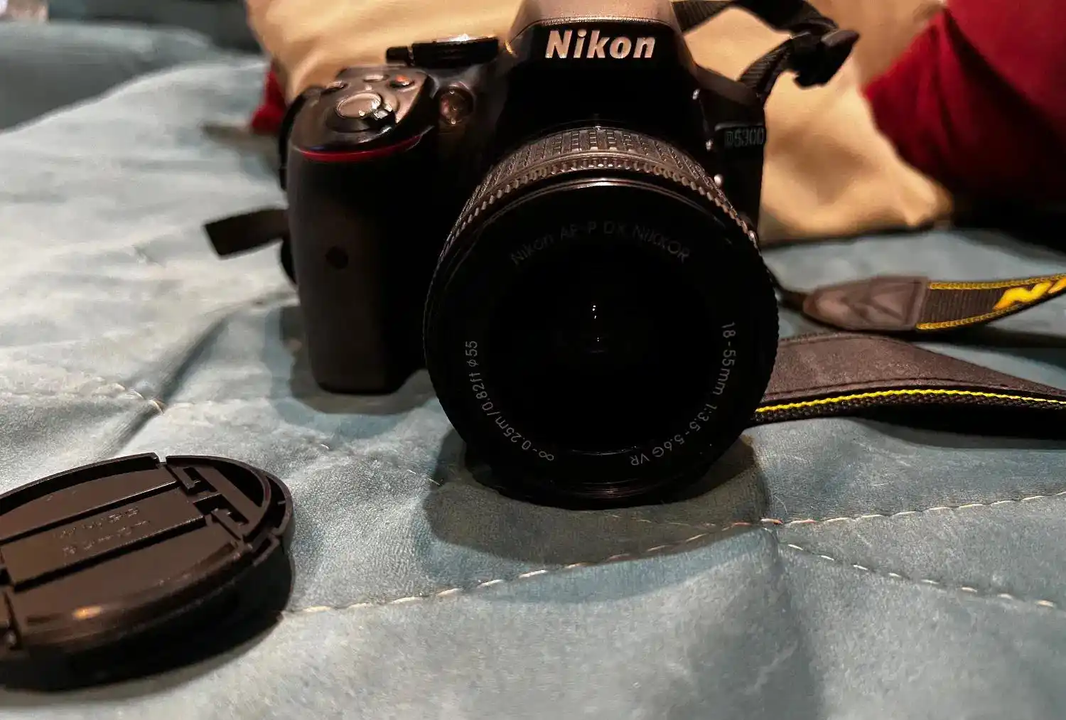 دوربین نیکون D5300 لنز 18 55 در حد نو، به همراه کیف اصل نیکون و کاور شارژر بدون خط و خش دوربین دارای جی پی اس و اتصال به وای فای دارد رم دارد
