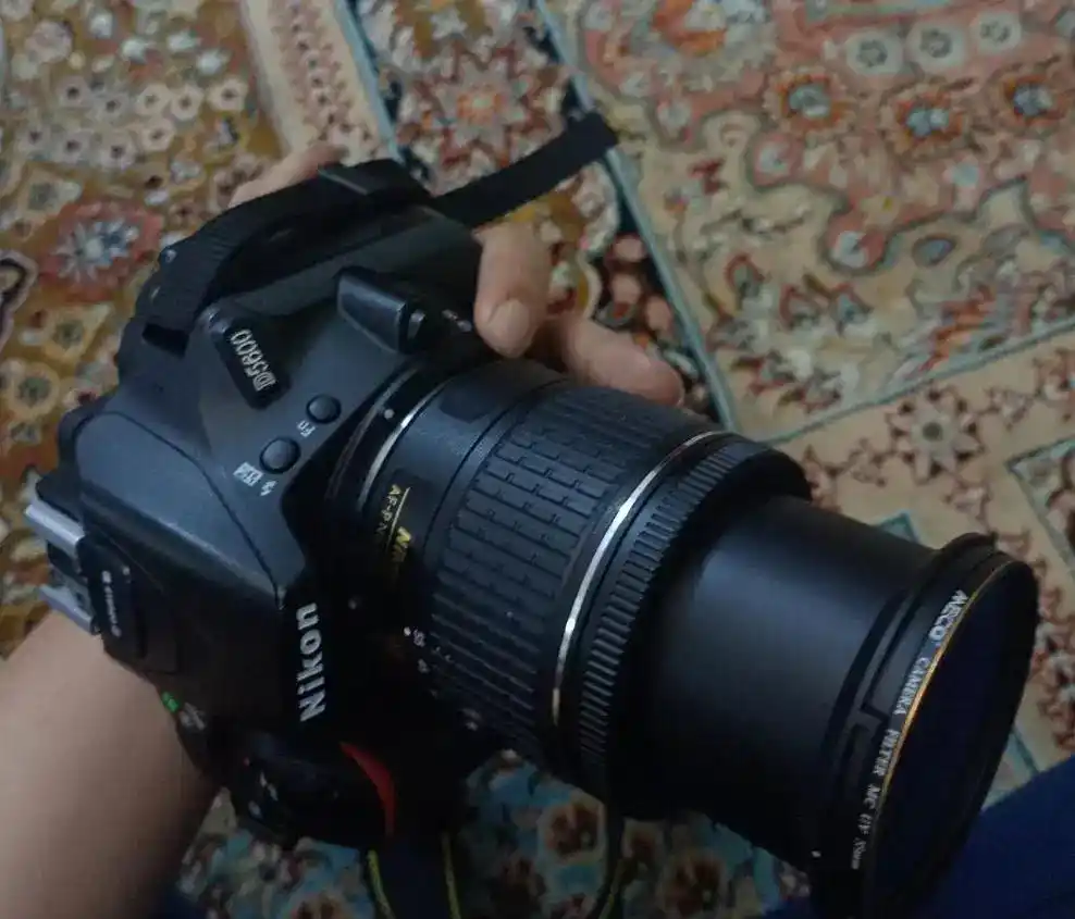دوربین نیکون 5600D تمیز و سالم بدون هیچ ایراد، خط و خش و تعمیری لنز 18 55 فیلتر uv صفحه نمایش لمسی و 360 درجه چرخان شات حدود 8 هزار تا کارتن و بند فابریک و شارژر و باتری فابریک