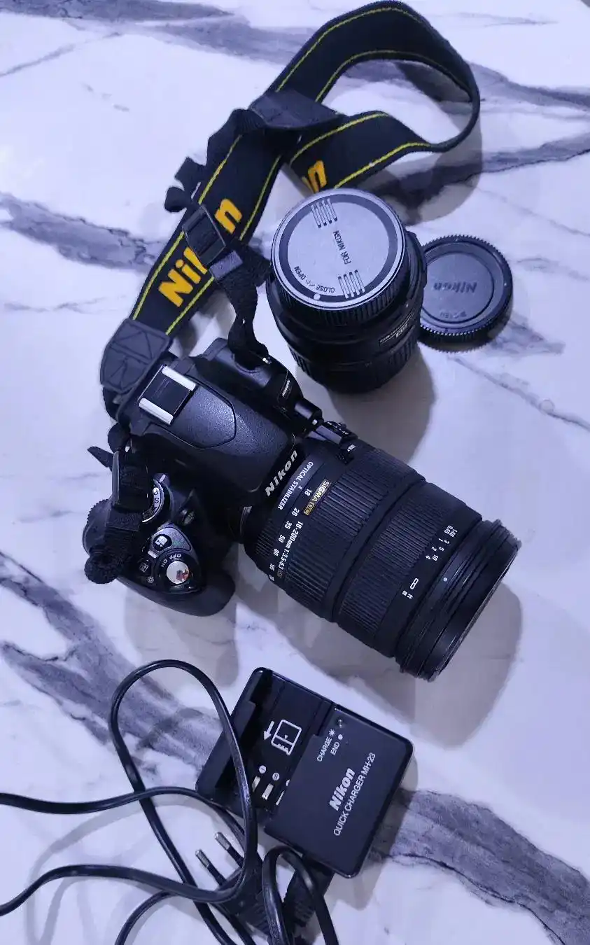 به شرط در حد آکبند بودن دو لنز ۱۸ـ۵۵ و ۱۸ـ۲۰۰ مناسب افراد مبتدی و علاقه مندان به عکاسی فاقد باتری ساخت تایلند شارژر دارد کیف حمل دارد بند دوربین اصلی