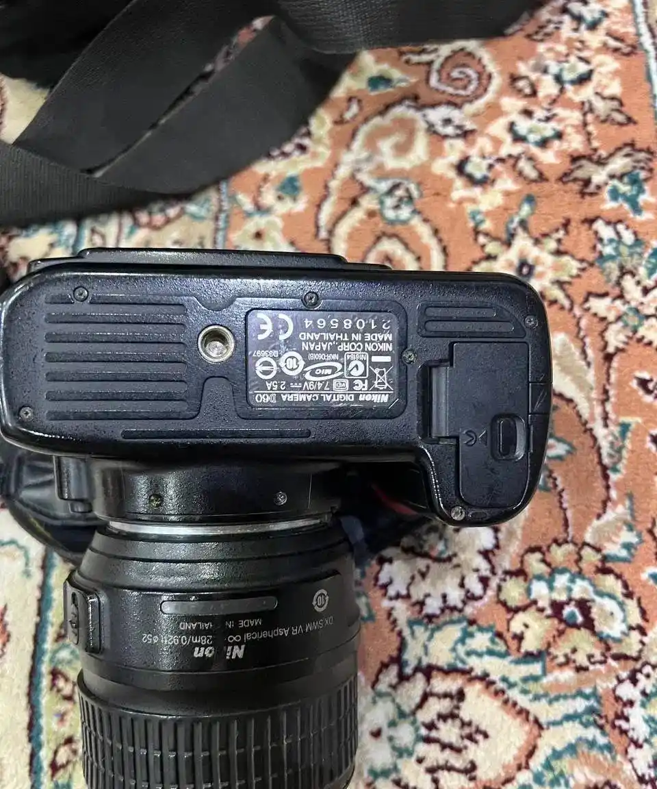 یک عدوربین عکاسی مدل نیکان d60 بالنزی که روشه بفروش میرسه سالم سالم یه رم هشت گیگ کاوربارون شارژهم سالم وکیف بدون پارگی همراه دوربین موجودمیباشدکیفت عکس برداریشم خیلی خوبه الان خیلی وقته که هم ازش استفادای نشده فکرنکنم کلان ۲۰۰عکس هم من بهاش گرفته باشم دیگه اطلاعاتی درباره دوربین ندارم چون حرفه ام نیستش بحرحال درختمتونم