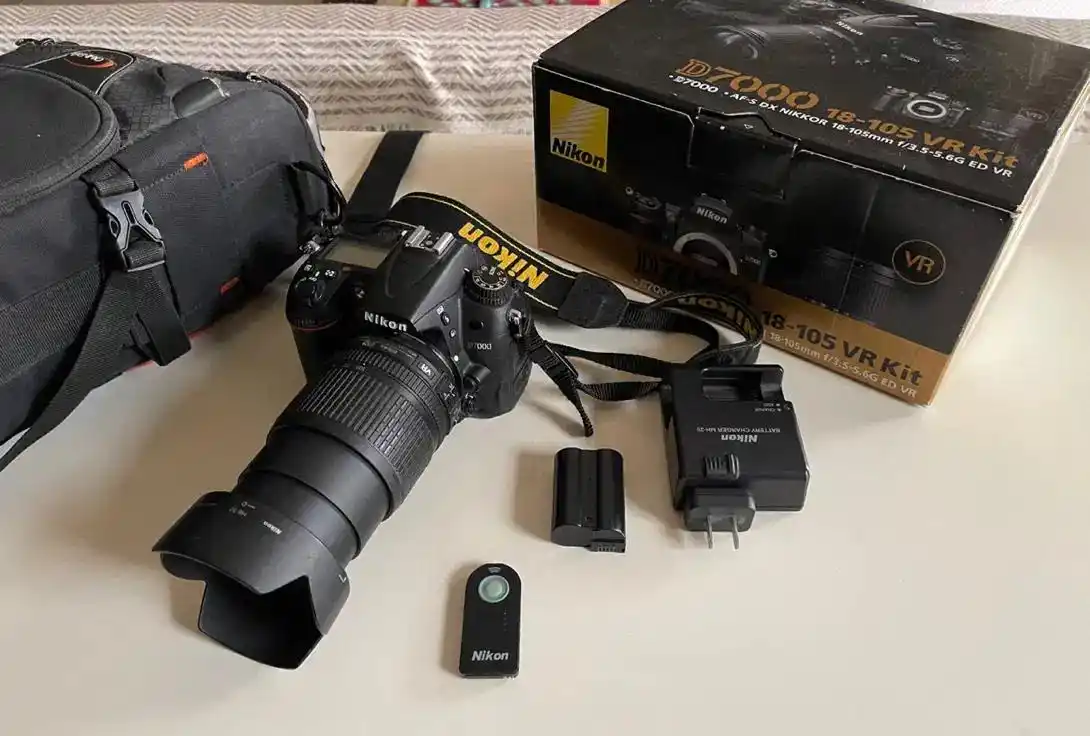 دوربین عکاسی نیکون Nikon D7000 بسیار کم کارکرد، کاملا سالم، بدون خط و خش به همراه لنز ۱۸-۱۰۵، باتری و شارژر، ریموت، کیف، هود لنز و محافظ UV فیلمبرداری Full HD لرزشگیر فوکوس ۳۹ نقطهای