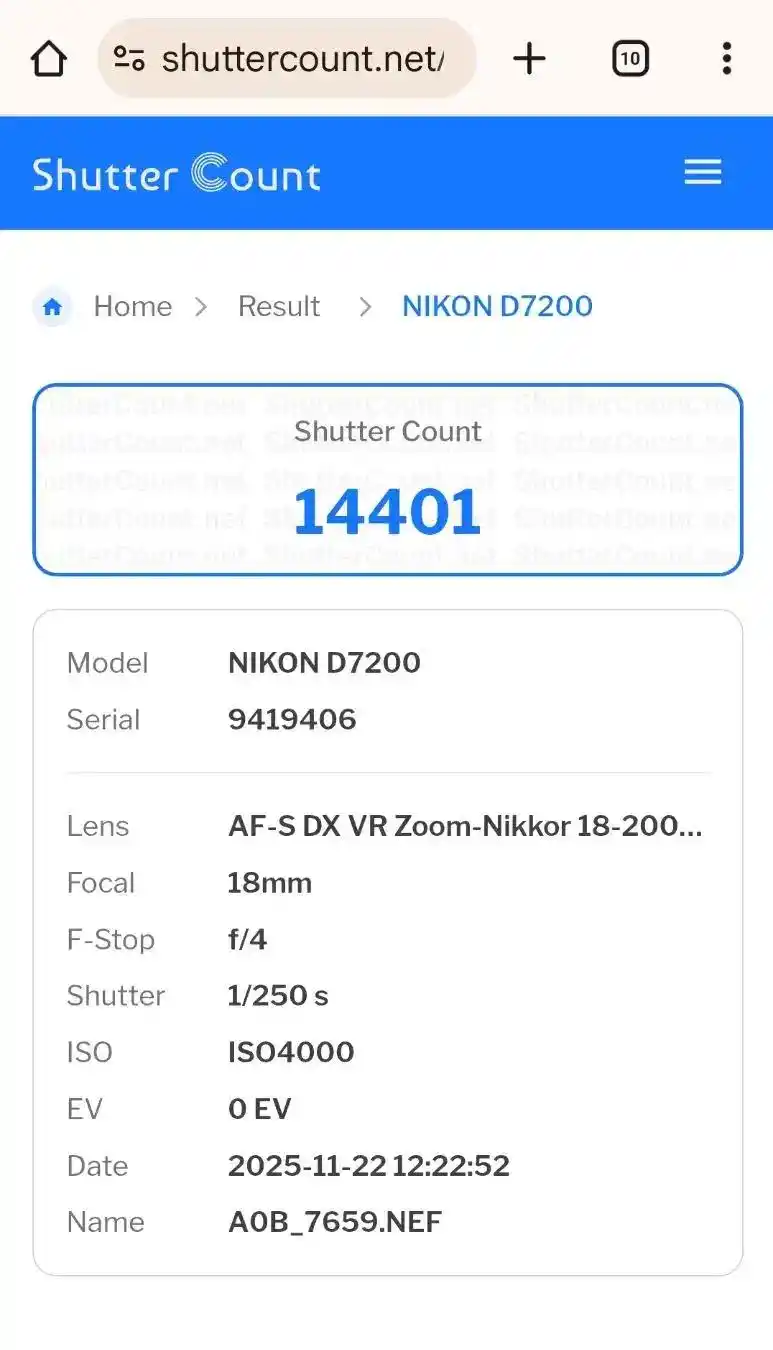 ....از لحاظ فنی کارکرد در حد نو بدون فیلمبرداری، کارکرد شاتر ۱۴.۵k،عمر شاتر ۲۰۰k