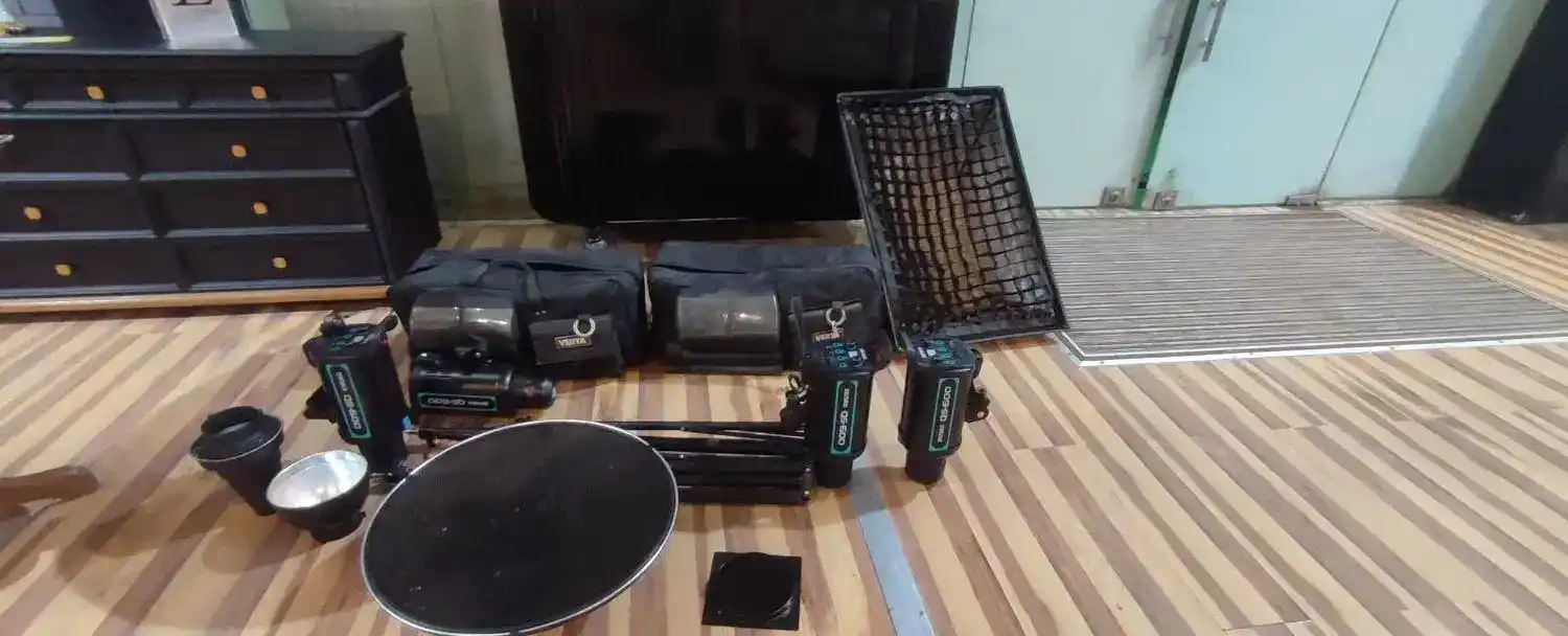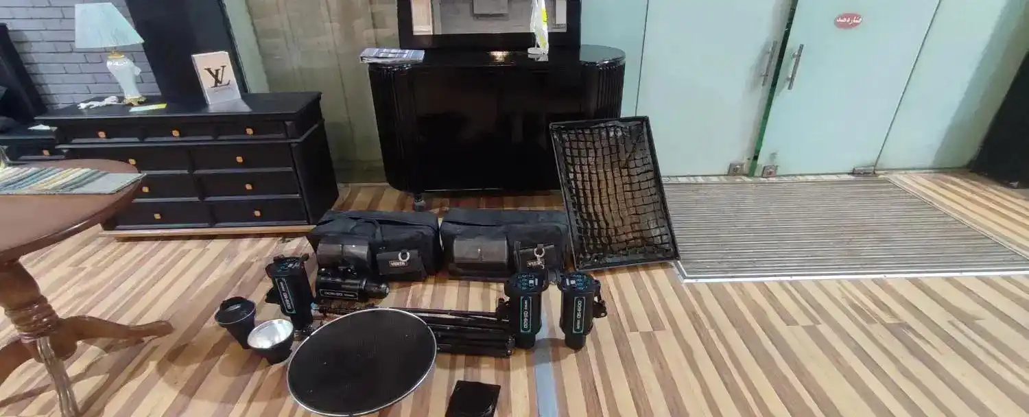 نورها ۴ شاخه ۶۰۰ ژول گادوکس سافت باکس ۲ عدد چتر ۲ عدد ۶۰×۹۰ بیوتی دیش ۱ عدد اسنوت ۱ عدد زنبوری ۱ عدد پایه ۴ عدد رادیو فلش گادوکس دوربین عکاسی نیکون D810 لنز ۲۴ _۸۵ پایه دوربین آلمانی بدنه فیبر کربن