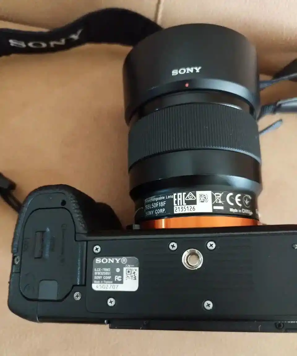 دوربین الفا7R2فول فریم.فوق درحدنو اصلی وبارزولیشن۴۲مگاپیکسل باوضوح وشارپ بالا دارد.این دوربین برای عکاسی بوده واصلا تابه حال ازش به عنوان فیلمبرداری استفاده نشده.لیزرشدگی وپیکسل سوختگی ندارد.لنز۵۰میلیمتربادیافراگم۱/۸که عکسهای خاصی به شما میده .همه ابزارفوق کارتن ودفترچه دارند.وسه عدد باطری هم دارد