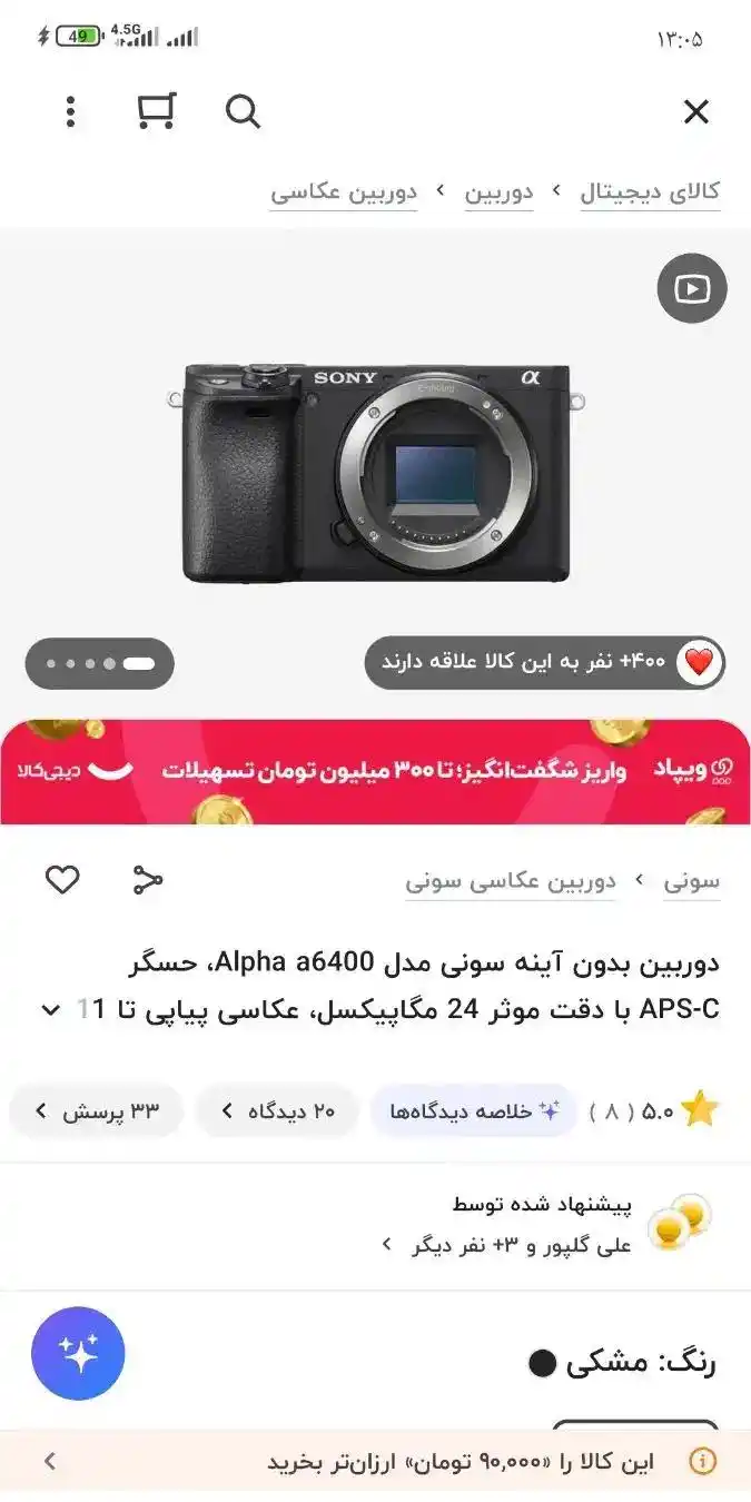 دوربین سونی A6400 + لنز ۱۶-۵۰ mm