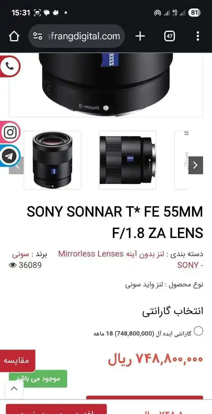 یک عدد بادی a7c یک عدد بادی A7riii یک عدد لنز ۵۵ زایس f1.8 یک عدد گیمبال ویبیل ۲ پرو به همراه کیف شارژر اصلی و باطری اصلی تمامی کالا ها در حد آکبند میباشد مبلغ فروش تمامی کالای فوق 320.000.000 م تومان ""فروش بعلت مهاجرت""