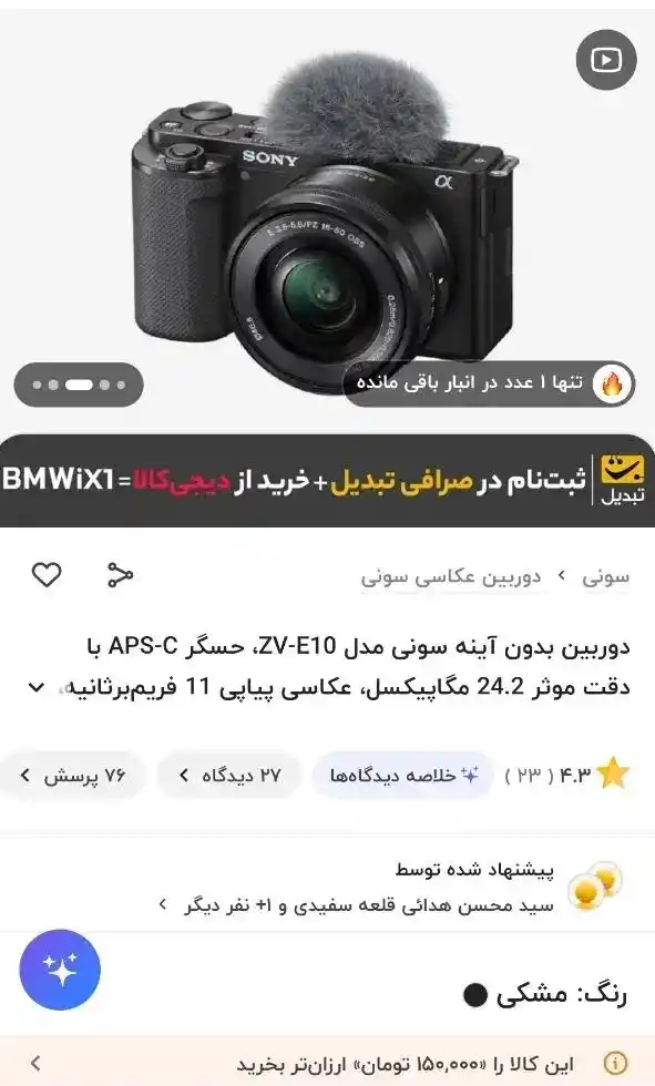دوربین عکاسی Sony alpha ZV_e10 به همراه باتری سالم کابل شارژ و بند خود دوربین دوربین کاملا نو هستش و فقد از داخل کارتن باز شده و فقد یک شات عکس با آن گرفته شده است طبق آخرین عکسی ک گذاشتم 10 میلیون زیر قیمت
