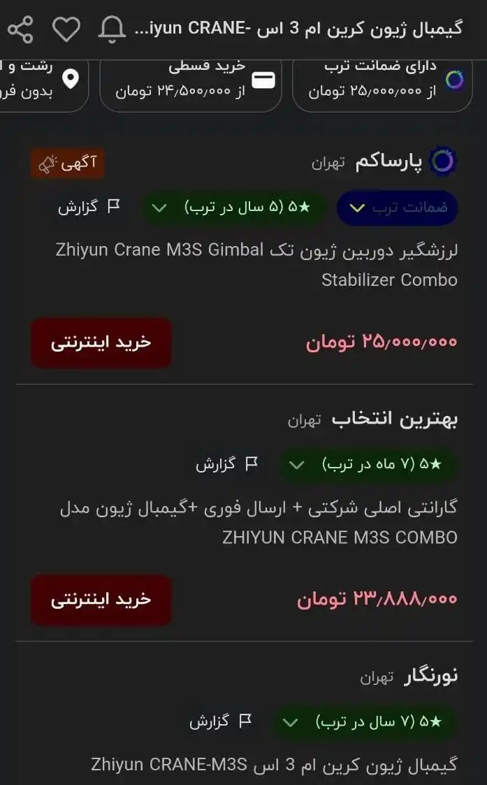 گیمبال ژیون تک کرین M3 3-Axis دست دوم