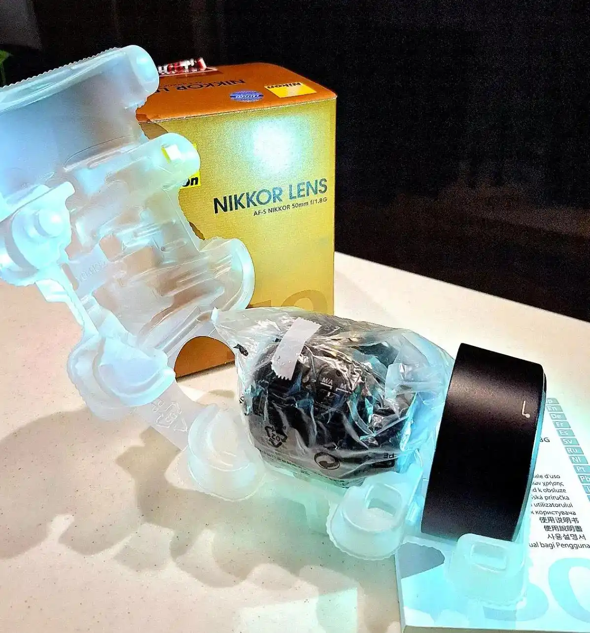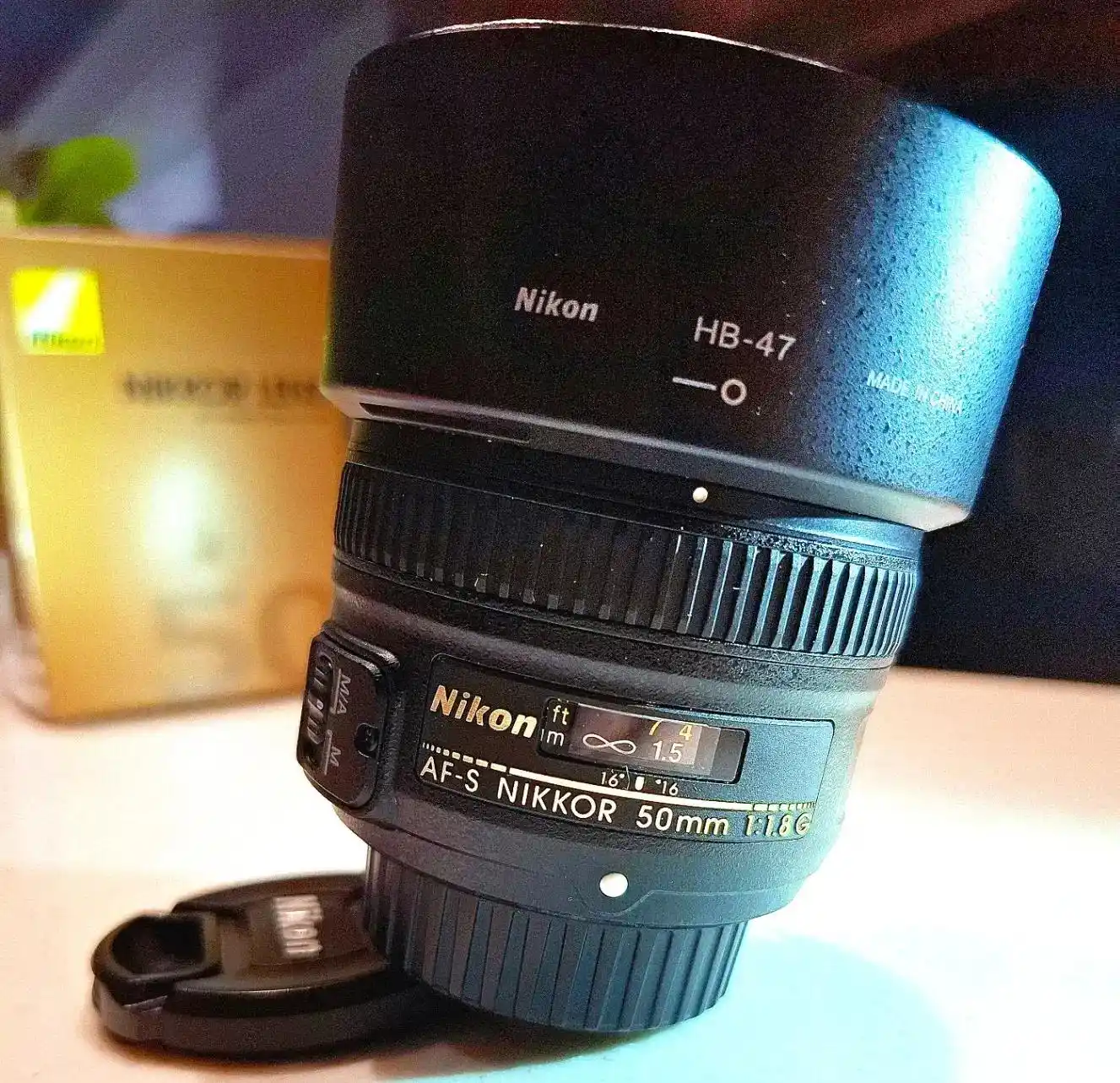 AF-S NIKKOR 50mm F1.8G بسیار تمیز،و کمکارکرد در حدِ نو. کاور پلاستیکی و کارتن و دفترچه اش هم موجود است.