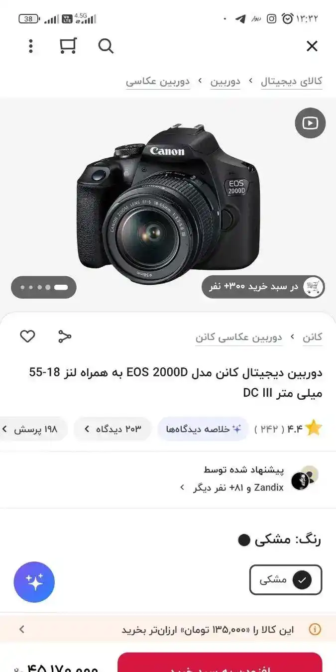 دوربین کنون 2000 D