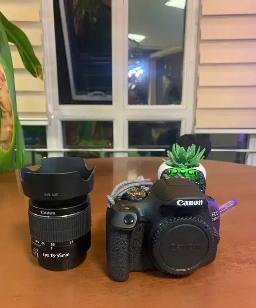 دوربین عکاسی و فیلم برداری Canon2000D به همراه لنز 18-55 کیت به همراه جعبه و شارژر رو به فروش میرسونم عزیزان.