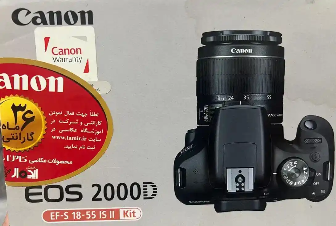 دوربین کنون رم ۱۶ گیگ کیف شارژر لنز ۱۸-۵۵ بدون بازشدگی خیلی کم استفاده کردم فقط یه طرف صفحش یکم زرد شده که نمایندگی هم بردم گفت مشکلی ایجاد نمیکنه ولی بخاطر همون قیمت و پایین تر گذاشتم