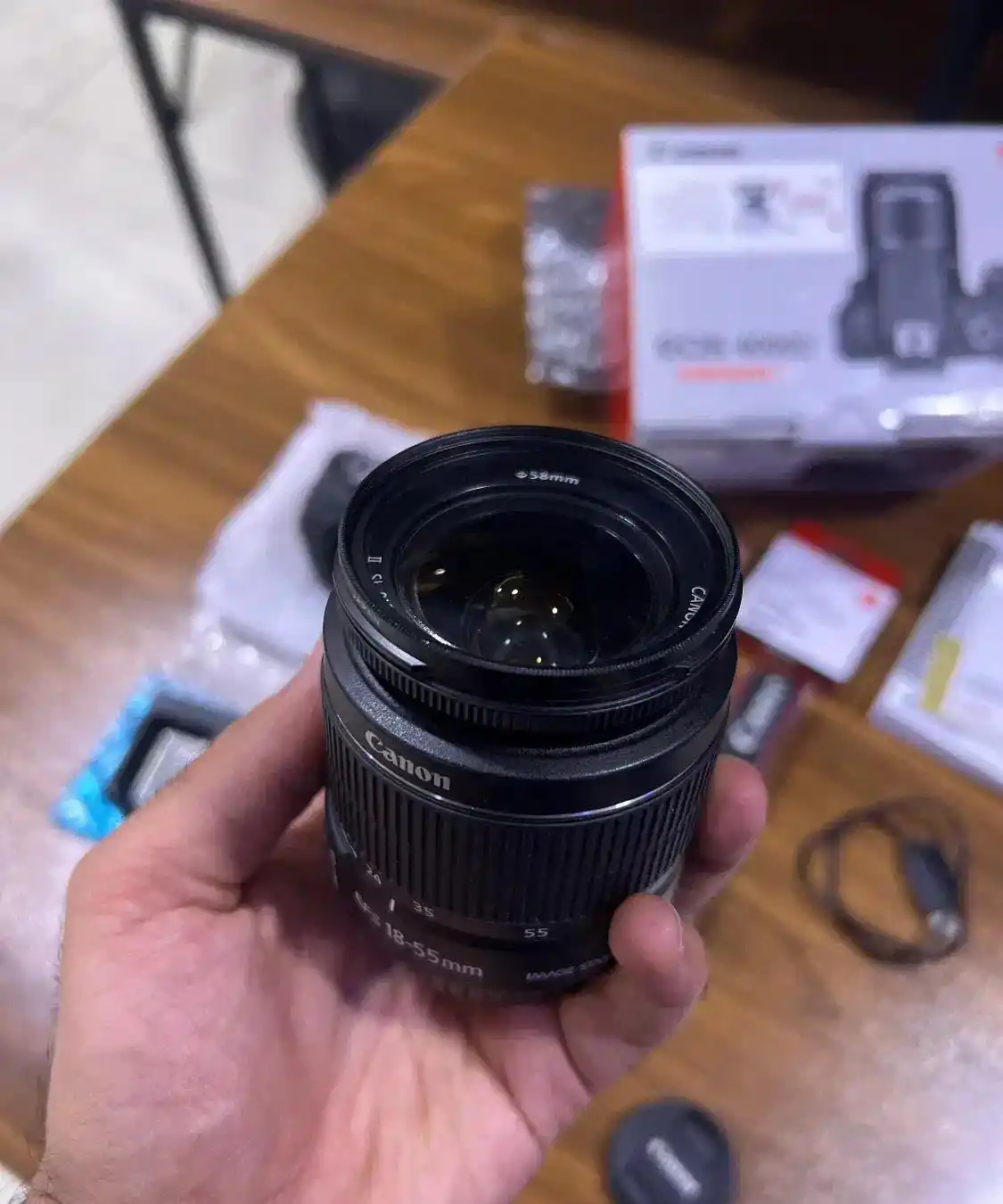 با لنز کیت 18-55 دوربین همانطور ک توی عکس ها مشخص هست کاملا نو هست. واسه خونه گرفته بودم ولی استفاده نشد زیاد. کیفش رو هم میدم روش.