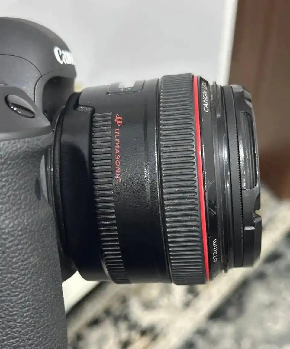 دوربین کنون 5D مارک 4 7400 شات بسیار نو تمیز لنز 50 فیکس با f1.2 با تمام وسایل و کارتن و کیف