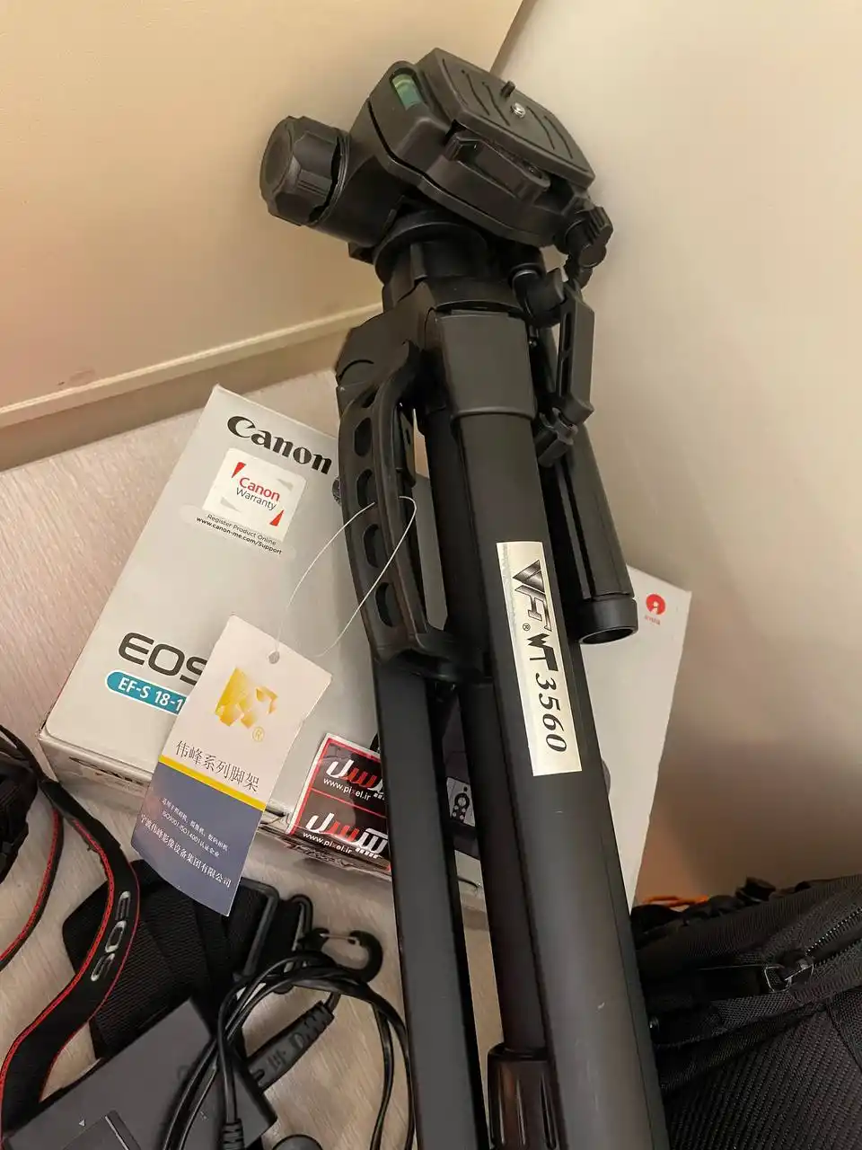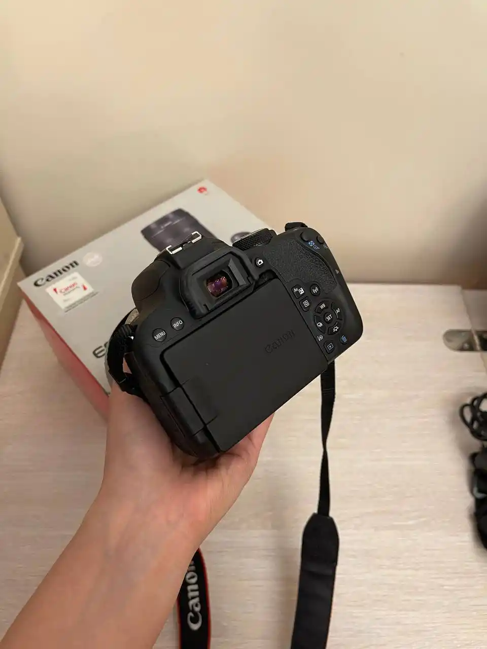 دوربین کنون 800D لنز ۱۸_۱۳۵ همراه با سه پایه دوربین wt3560 فیلتر UV کاغذ تمیز کننده لنز kodak کیف دوربین کنون بند دوربین اضافه باتری صد در صد سالم شارژر باتری و همراه رم دوربین نو،بدون هیچ خط و خش