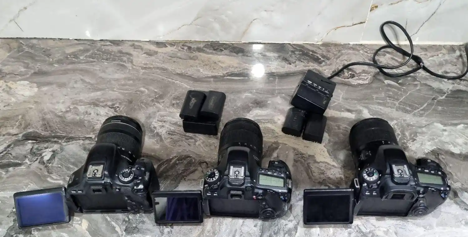 دو عدد دوربین کانون 80D هرکدام به مبلغ ۴۲،۰۰۰،۰۰۰ و یک عدد دوربین کانون 600D به مبلغ ۱۲،۰۰۰،۰۰۰ دوربین ها تمیز بدون تعمیر تمام باطری ها سالم اصلی هر دوربین دو عدد باطری و یک شارژر به همراه دارد 600D یک باطری دارد به همراه شارژر