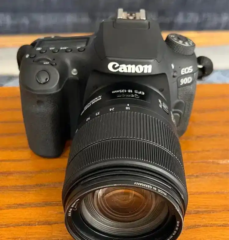 دوربین عکسی 90d کنون به همراه لنز 18~135 و کیف دوربین فقط ۶۰۰۰ شات بدون لیزر خوردگی بدون پیکسل سوخته ❌ بدون کارتون