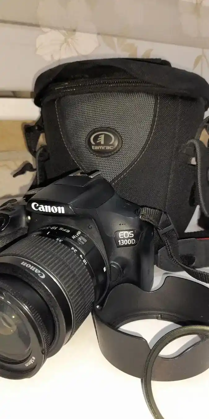 دوربین عکاسی کانن 1300D لنز 18_55 به گوشی و وای فای هم وصل میشه همراه : هود ، یو وی ،کیف ، شارژر، کارتون کم کارکرده قیمت :۲۵تومن تخفیف به مشتری واقعی میدیم