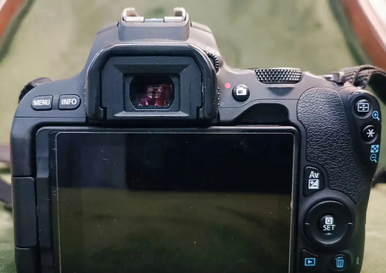 Canon EOS 200D لنز EF-S 18-55mm کم کارکرد و تمیز همراه هود لنز استفاده شخصی، بدون ضربه فلاش دوربین قطع و وصل میشه