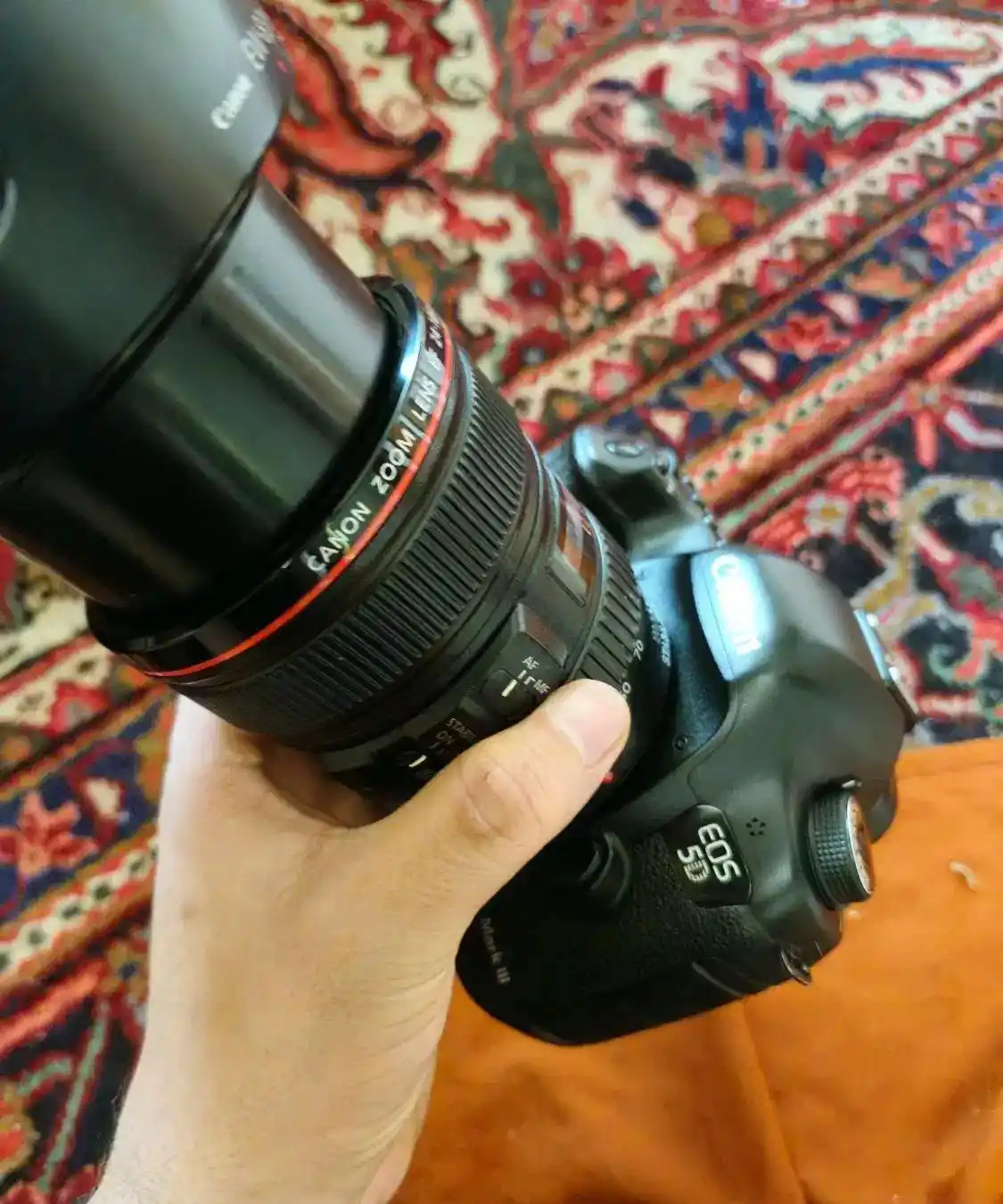 دوربین فایو دی مارک ۳ ۵دی مارک سه لنز ۲۴ - ۱۰۵ سری ال تمیزی دوربین و لنز در عکسها کاملا پیداست دفترمون رو جمع کردیم و به قیمت مناسب تقدیم میکنم.