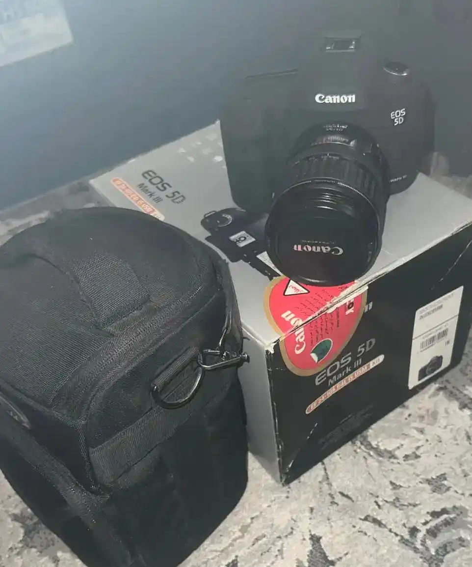 دوربین کنان مارک ۳ 5d شات زیر ۵ هزارتا بانز ۲۸*۱۳۵ همراه جعبه و کاور ژله ای و شارژر و رم ۸ گیگ وکیف و باطری اکبند قیمت ۷۵ میلیون تمیز و سالم در حد اکبند تخفیف جزئی