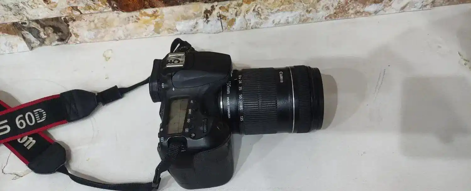 دوربین عکاسی و فیلمبرداری کنون 60dبا لنز 135-18 باطری و شارژر و کارتن دارد تمیز و سالم با خیال راحت ببر باب دوست بشرط تست چهار سال تو آتلیه عکس گرفتم باهاش تقریبا سه ساله بدون استفاده مونده
