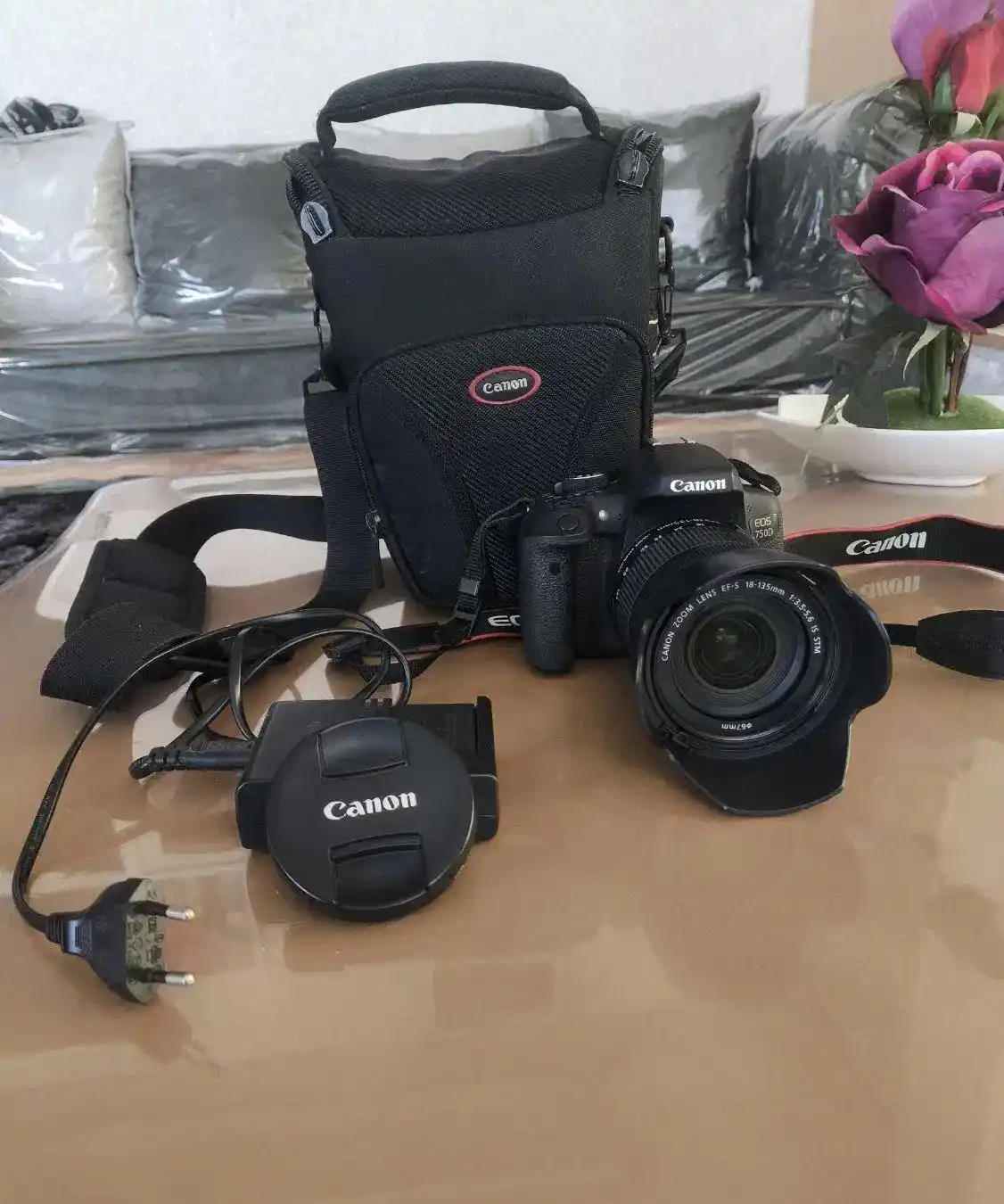 دوربین canon EOS 750d لنز 18-135 تمیز و مرتب در حد نو کاملا سالم. تعداد شات پایین کیف و شارژر