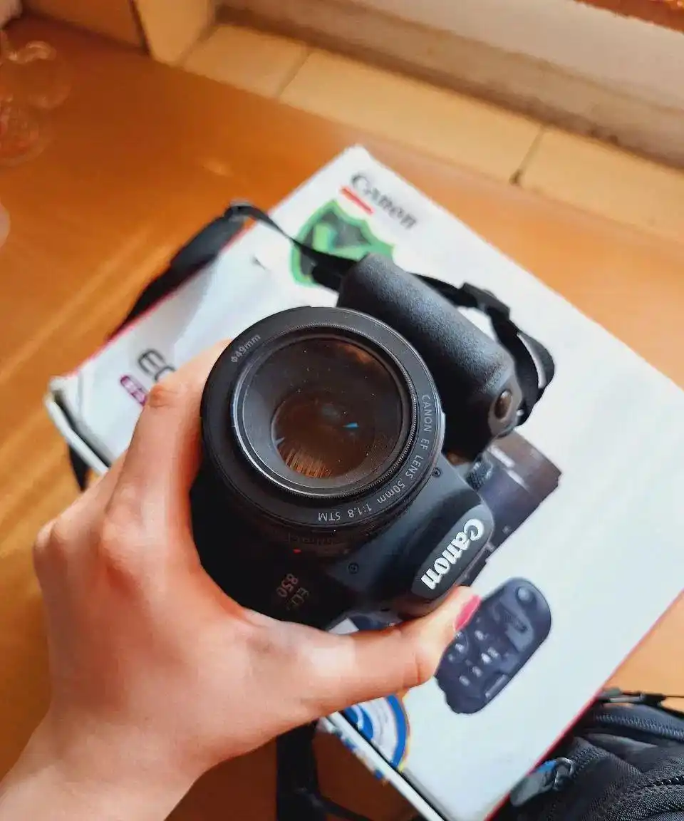 دوربین عکاسی Canon 850d با لنز ۱۸_۵۵ در حد نو ۳۰۰۰شات قیمت ۷۸ و لنز ۵۰فیکس f 1.8 ۵ تومن