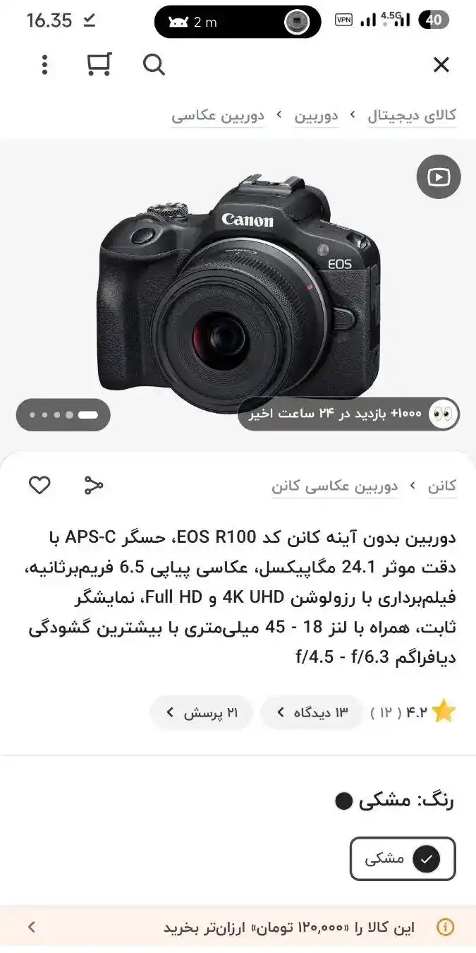 دوربین Cannon R100 V2025 به همراه لنز 18×45 ویژه