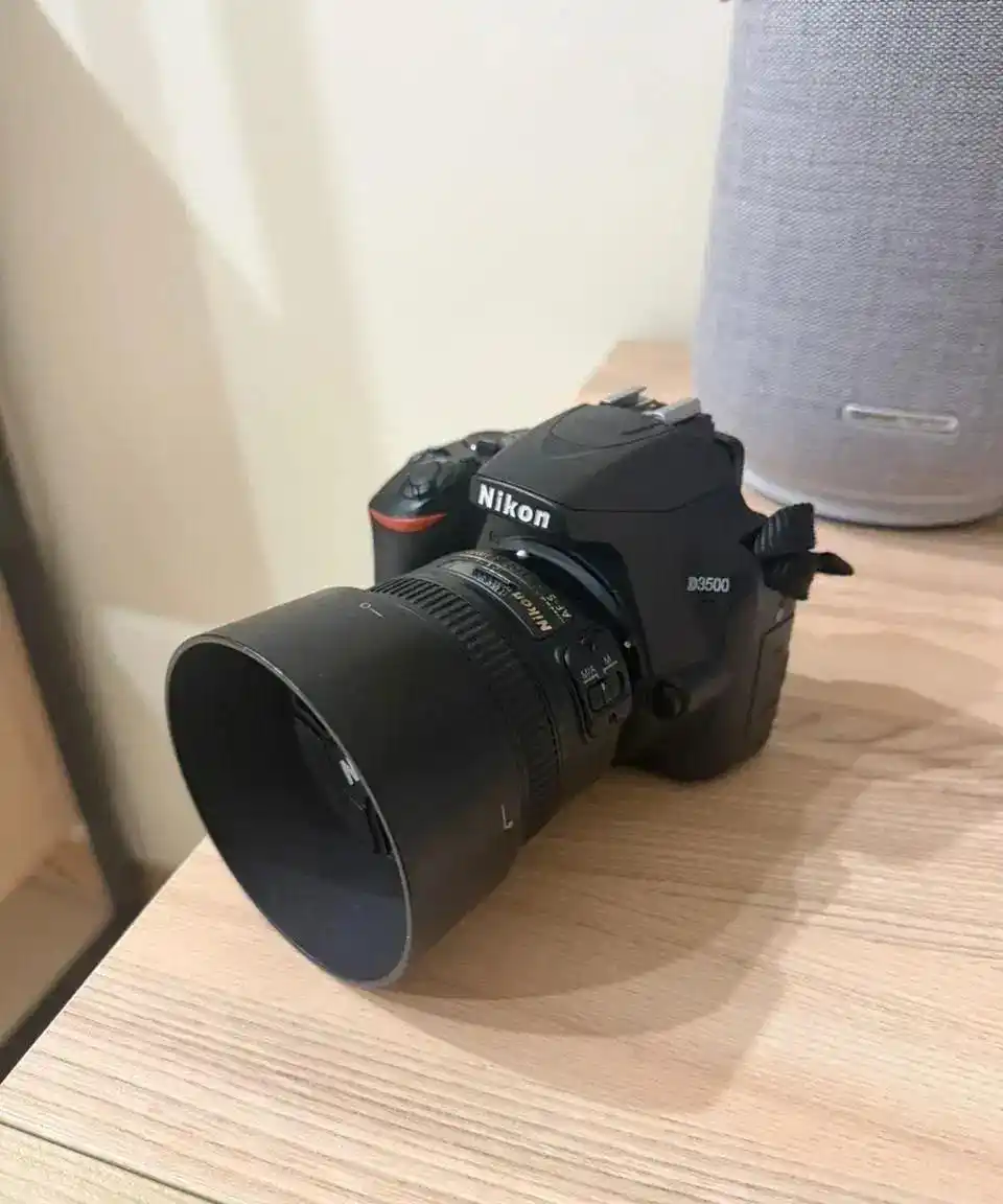 دوربین نیکون ۳۵۰۰ با لنز 50mm بسیار سالم و نو نو هست برا عکاسی شخصی بوده ۸ هزار تا شات nikon d3500 هم لنز هم بدنه کارتن داره