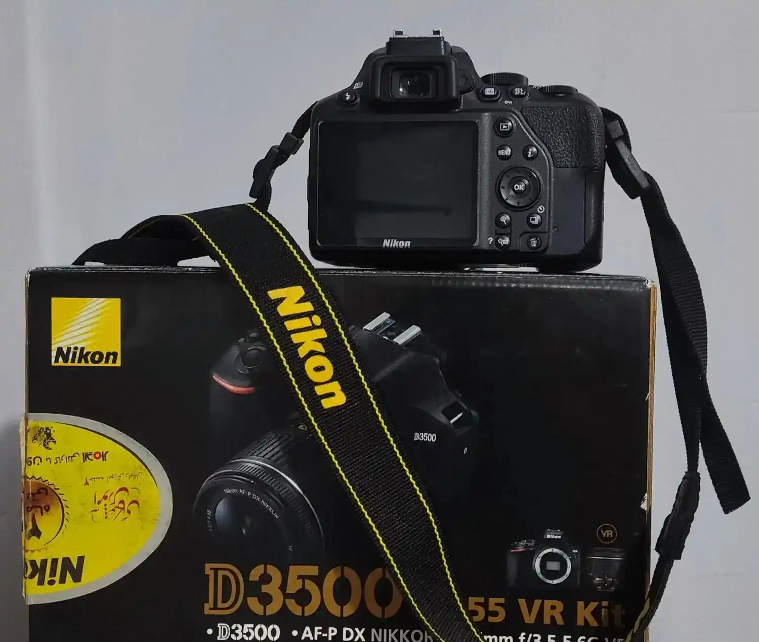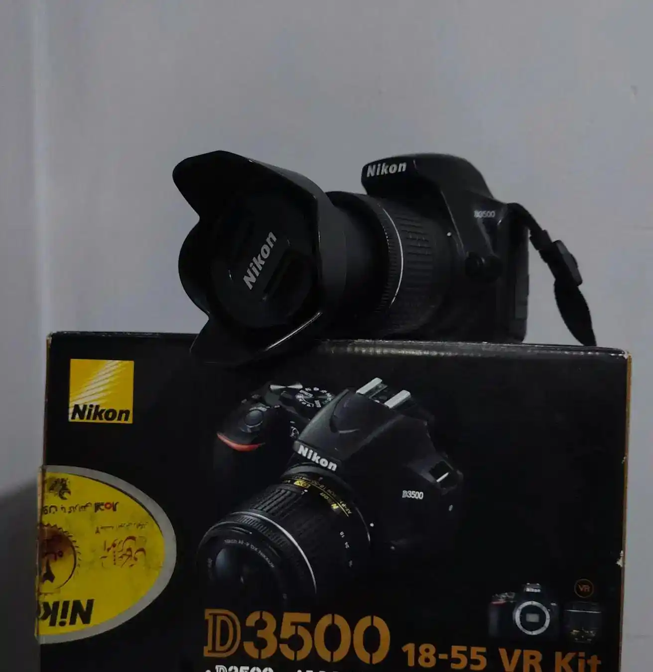 اقلام همراه: بدنه d3500 nikonلنز 18/55. در پوش لنز وبادی .باتری و شارژر اصلی . همراه با کیف دوربین
