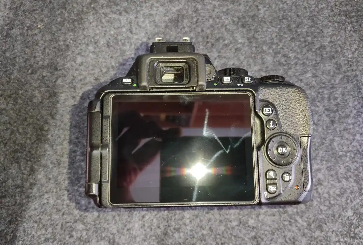 Nikon d5600 55_18 حدود ۱۸۳۰۰ تا شات خورده دوربین جعبه هم داره کپ لنزش شکسته