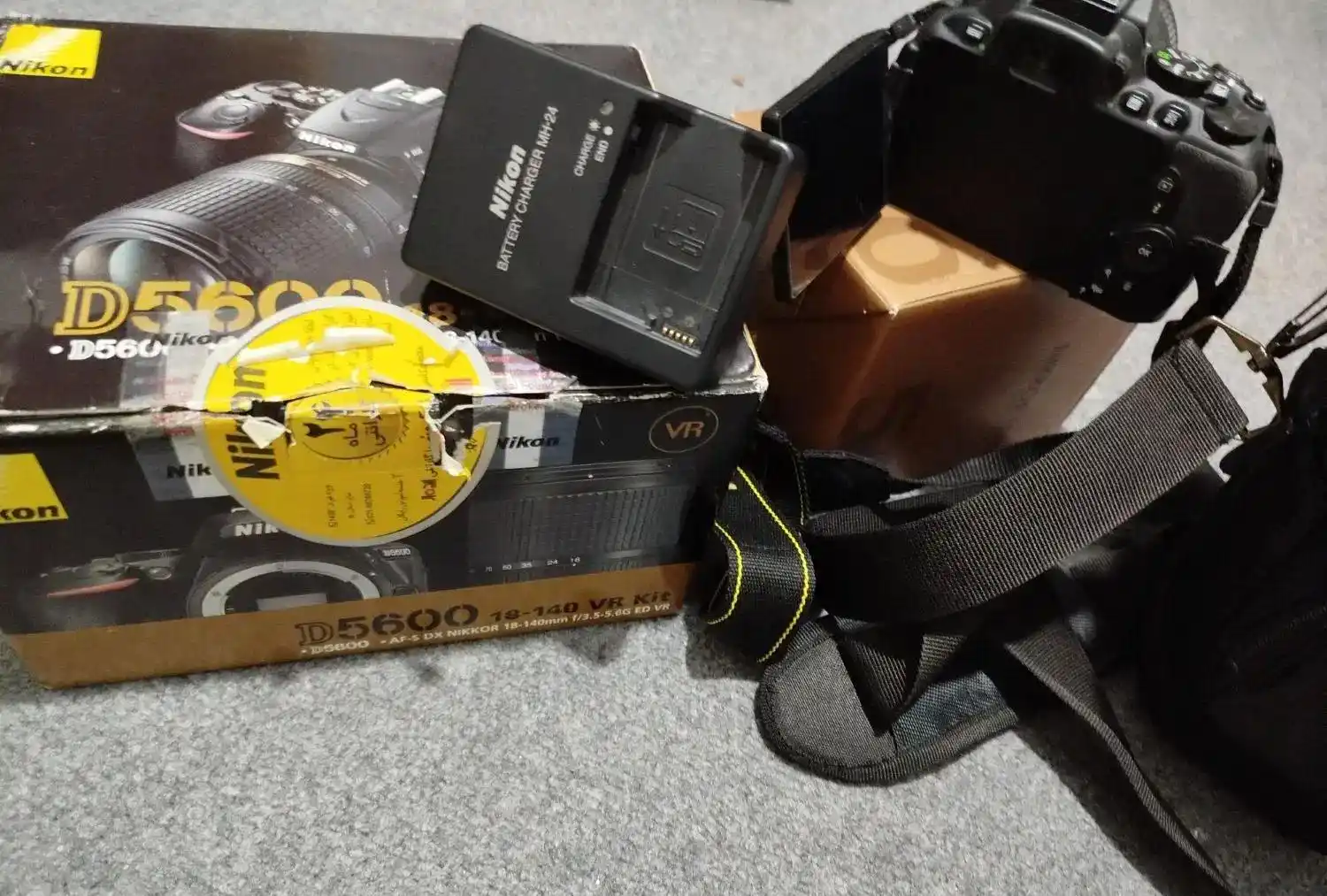 یک عدد دوربین عکاسی نیکون 5600 دی به اضافه لنز 50 فیکس بسیار تمیز زیاد هم استفاده نشده کیف و شارژر و کارتن هم دارد زیر پنج هزار تا شات خورده تمیزه و خط پخش نداره