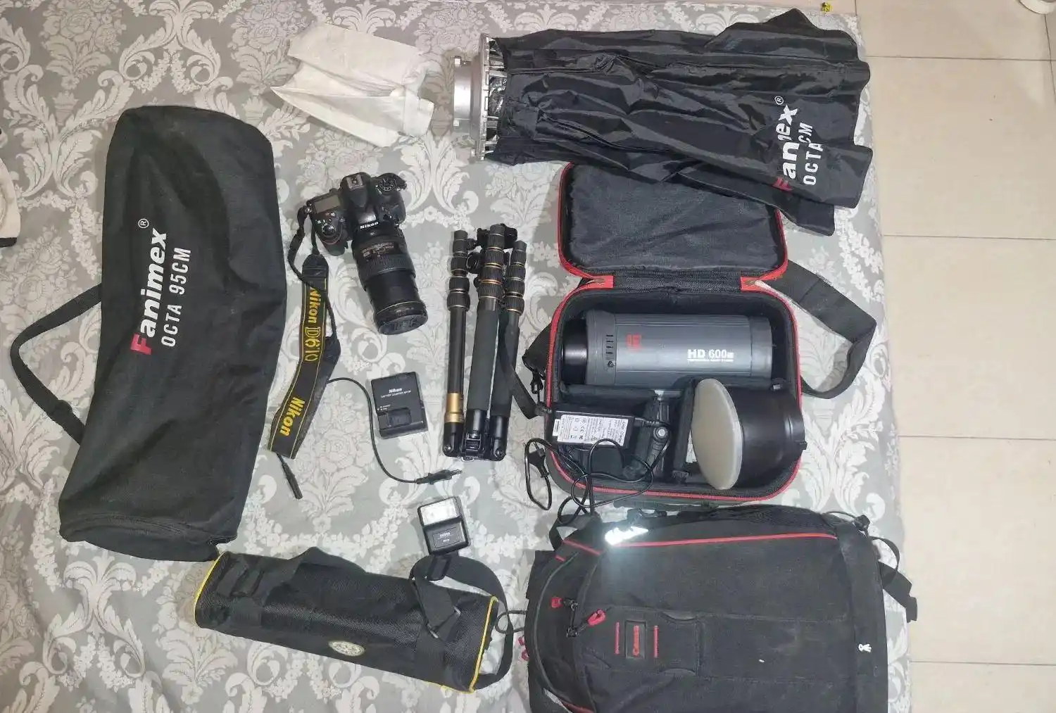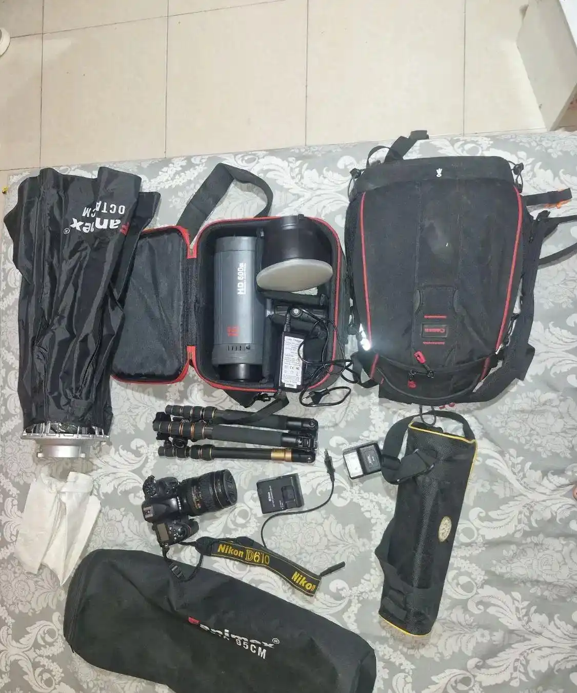دوربین حرفه ای نیکون دی 610 فول فریم F1 با لنز 120-24 نیکون و تجهیزات شامل نور،چتر،سه پایه،کیف کوله ای،سافت باکس و رم دوربین ب فروش میرسد. با دوربین فیلمبرداری اصلا انجام نشده فقط عکاسی شده بسیار کم کار فروش فوری فوری