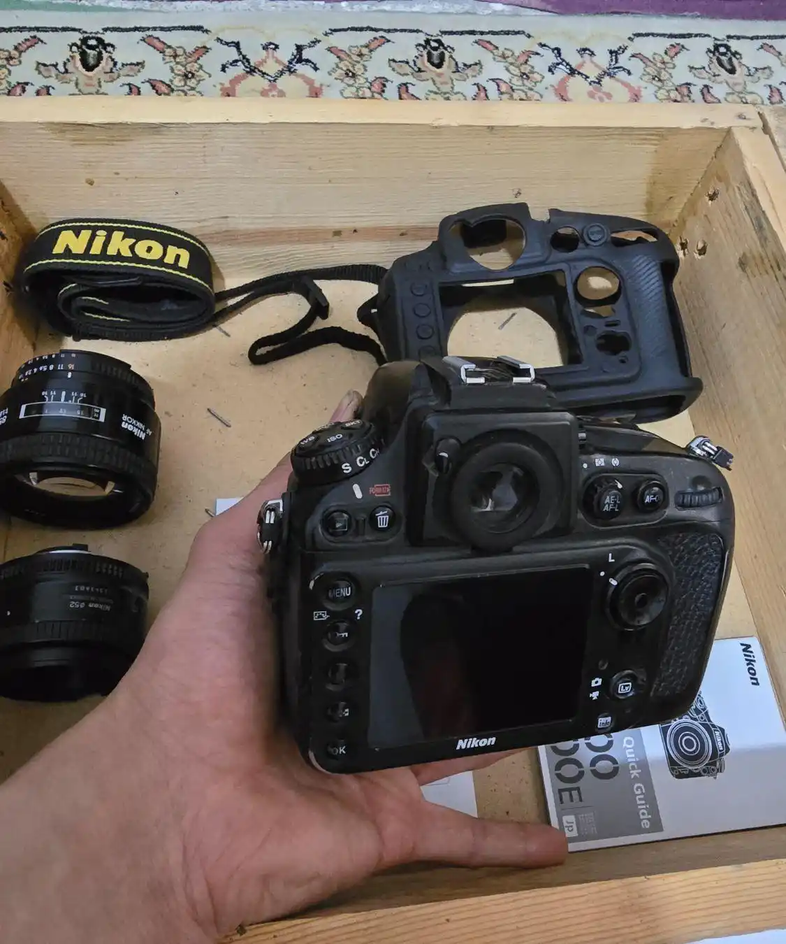 سلام دوربین نیکون d800 ساخت خود کشور ژاپن حدود 100 k شات و خوب استفاده شده همه چی موجوده از دفترچه ها کارتن و کابل اتصال و شارژ اصلی کاور ژله ای مخصوص دوربین باتری یدک ! رم دوربین cf و معمولی همه باهم (۸۴) بادی خالی ( ۵۰ ) لنز ۸۵ فیکس اف ۱.۸ ( ۲۰ ) لنز فیکس ۵۰ اف ۱.۸ ( ۱۵ ) ایزد منان نگهدارتان