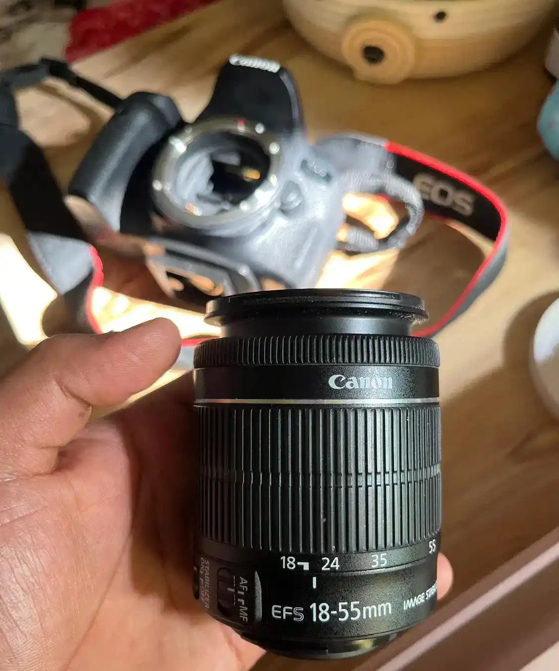 دوربین در حد نو بدون کوچکترین ایراد حدود ۱۰۰۰۰ شات همراه لنز ۱۸.۵۵ به همراه کیف