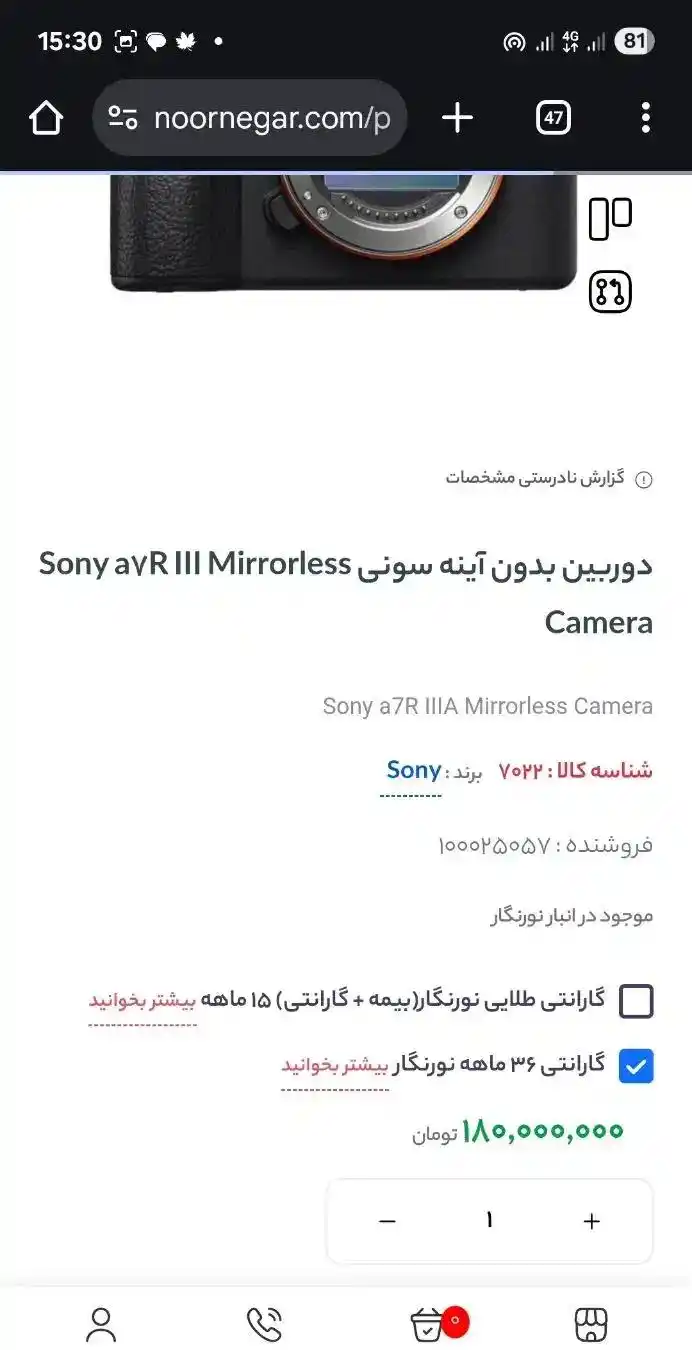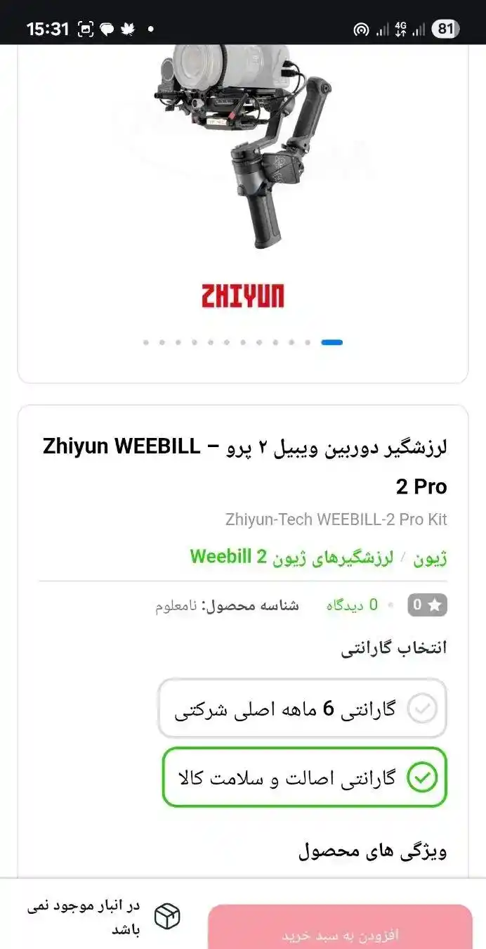 یک عدد بادی a7c یک عدد بادی A7riii یک عدد لنز ۵۵ زایس f1.8 یک عدد گیمبال ویبیل ۲ پرو به همراه کیف شارژر اصلی و باطری اصلی تمامی کالا ها در حد آکبند میباشد مبلغ فروش تمامی کالای فوق 320.000.000 م تومان ""فروش بعلت مهاجرت""